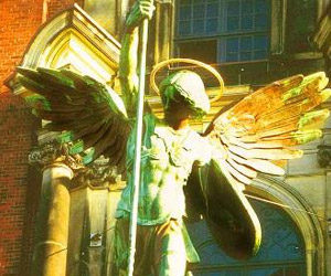 Hauptkirche St. Michaelis, Hamburg Hintergrundinformationen Kupfertreibarbeit mit Stahlinnengerüst, 1907 Künstler: August Vogel Höhe: Ca. 12 Meter, Flügelspannweite ca. 7 Meter Filmbeitrag des NDR, gesendet im Hamburg-Journal. https://www.youtube.com/watch?v=RYC087FrAak